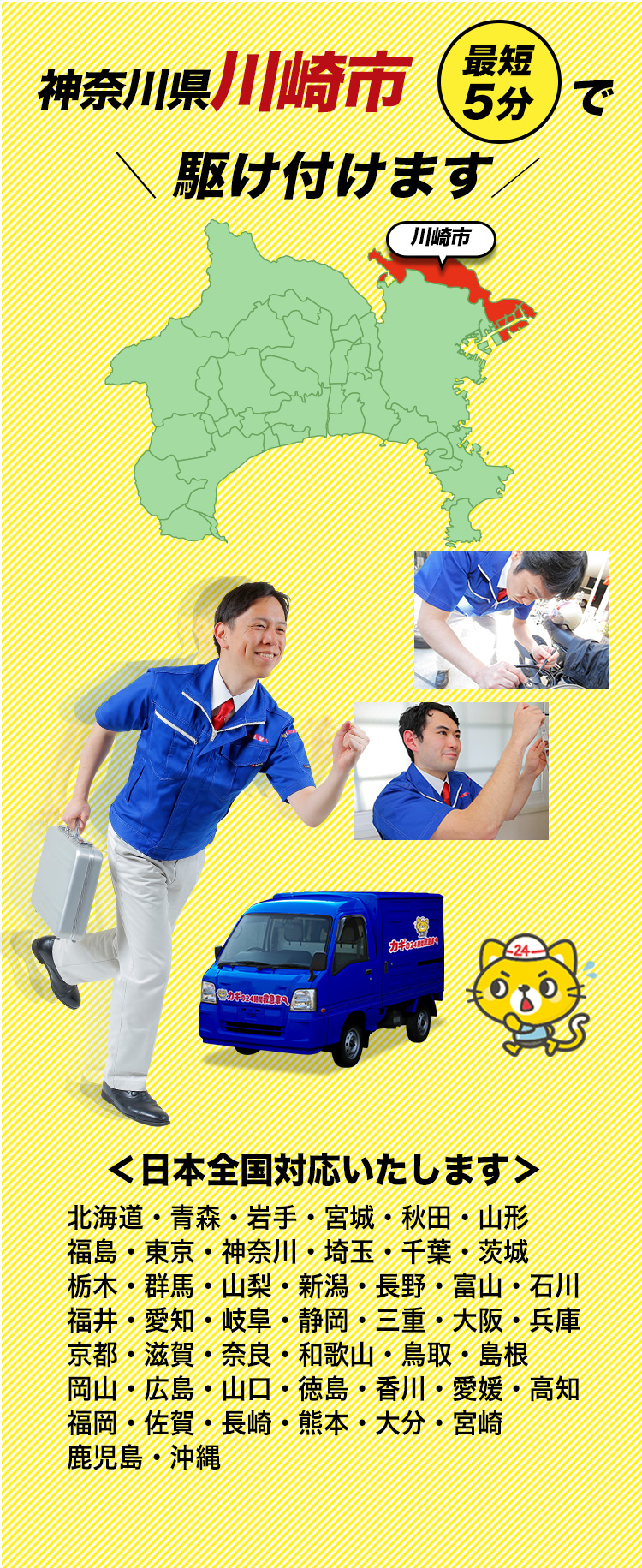 川崎の「カギの出張24時間」は、川崎駅周辺やラゾーナ川崎プラザでの鍵トラブルに迅速に対応。地域に密着したサービスで、お客様一人ひとりのニーズに応えるカスタマイズされた解決策を提供します。
